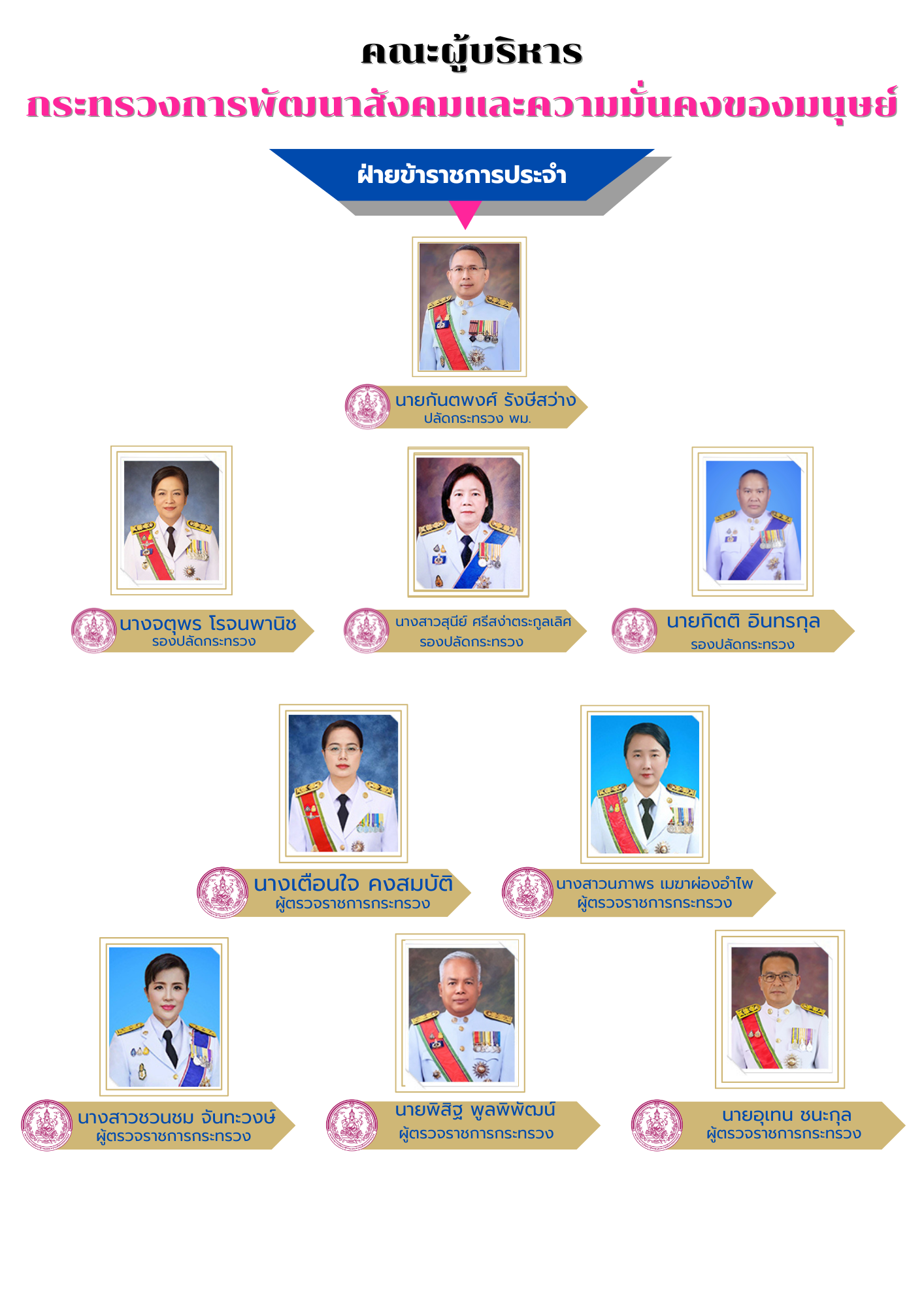 คณะผู้บริหารกระทรวง คณะผู้บริหารกระทรวง หน้าแรก > คณะผู้บริหารกระทรวง ฝ่ายการเมือง ฝ่ายข้าราชการประจำ ฝ่ายการเมือง ฝ่ายข้าราชการประจำ